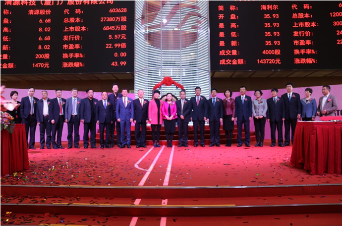 On 9:30 am, Hailir Chairman Geyaolun and deputy mayor Dongxiaoli from Qingdao Municipal government gong for opening in SSE. Deputy director Wangfeng from Qingdao Finance office and deputy district head Liuqinglin from Chengyang District are also on the scene for expressing congratulations.