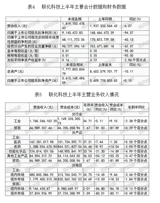 子公司停產,聯化科技營收凈利潤雙雙下跌