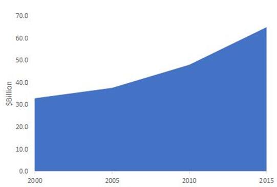 圖2. 農化產品的銷售額逐年增長(單位:十億美元 來源:BIS研究所分析)