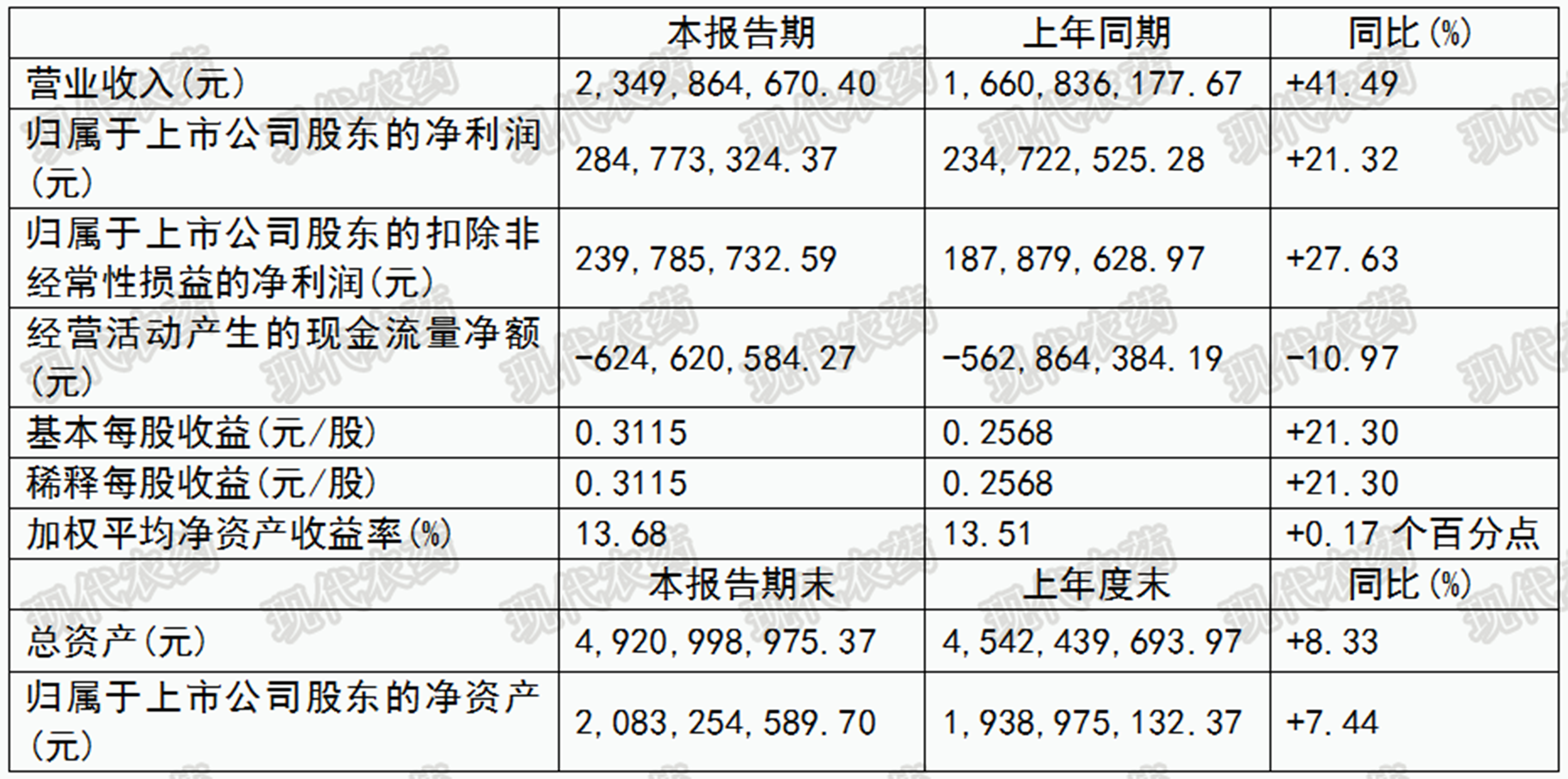 ? ??報告期內,公司整體經營業績增長,實現營業總收入23.49億元,較上年同期增長41.49%;實現歸屬于上市公司股東的凈利潤2.84億元,較上年同期增長21.32%。