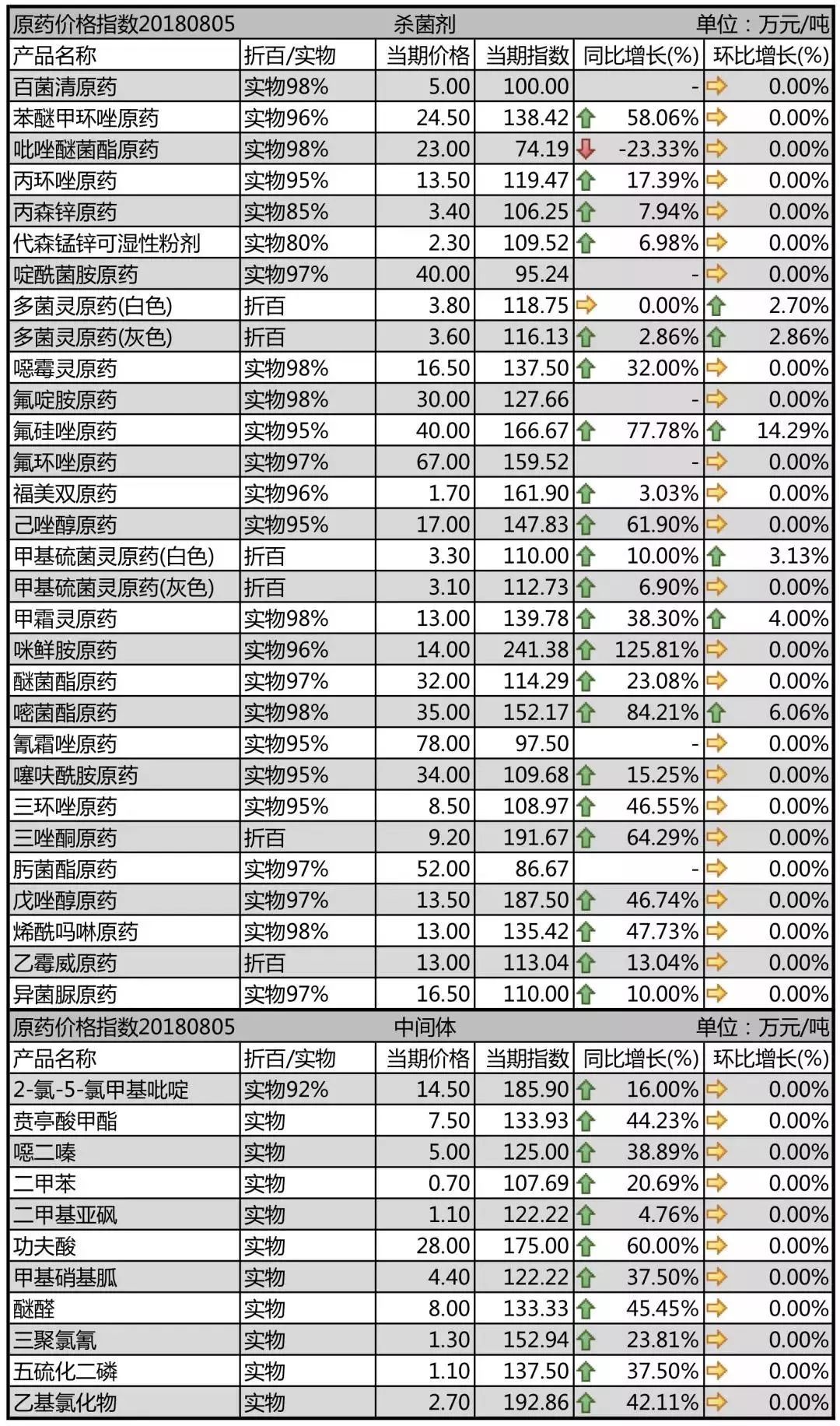 環比上周,多菌靈原藥、氟硅唑原藥、甲基硫菌靈原藥、甲霜靈原藥、嘧菌酯原藥等品種上漲,其余殺菌劑和中間體品種穩定為主。