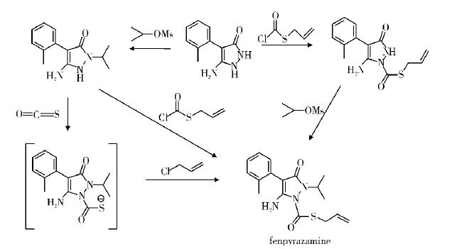 如殺菌劑fenpyrazamine的創制中,科研人員將“橋”替代“硫醚”基,使化合物的活性提升了10倍之多,且安全性明顯提高。圖2為新型殺菌劑fenpyrazamine合成路線。