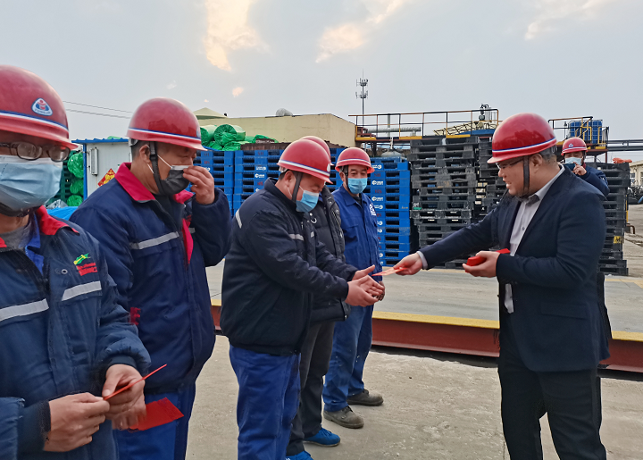 “新年好,大家辛苦了,祝大家新年快樂!”1月22日下午,總裁來到恒寧車間一線給大家拜年,并將新年紅包發放到堅守崗位的干部員工手中。