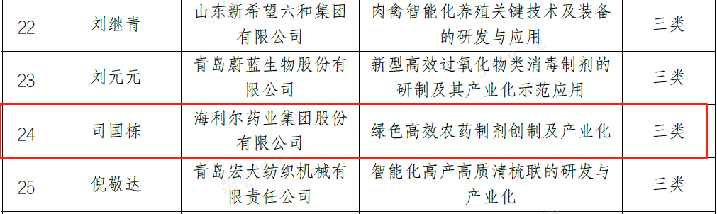 ? ? ? ?日前,青島市科技局公布了《2022年度青島產業領軍人才(團隊)擬支持名單》,經主管部門推薦、形式審查、答辯審查、現場考察等程序,全市共有55人入選,集團研發中心制劑所二室主任司國棟入選。