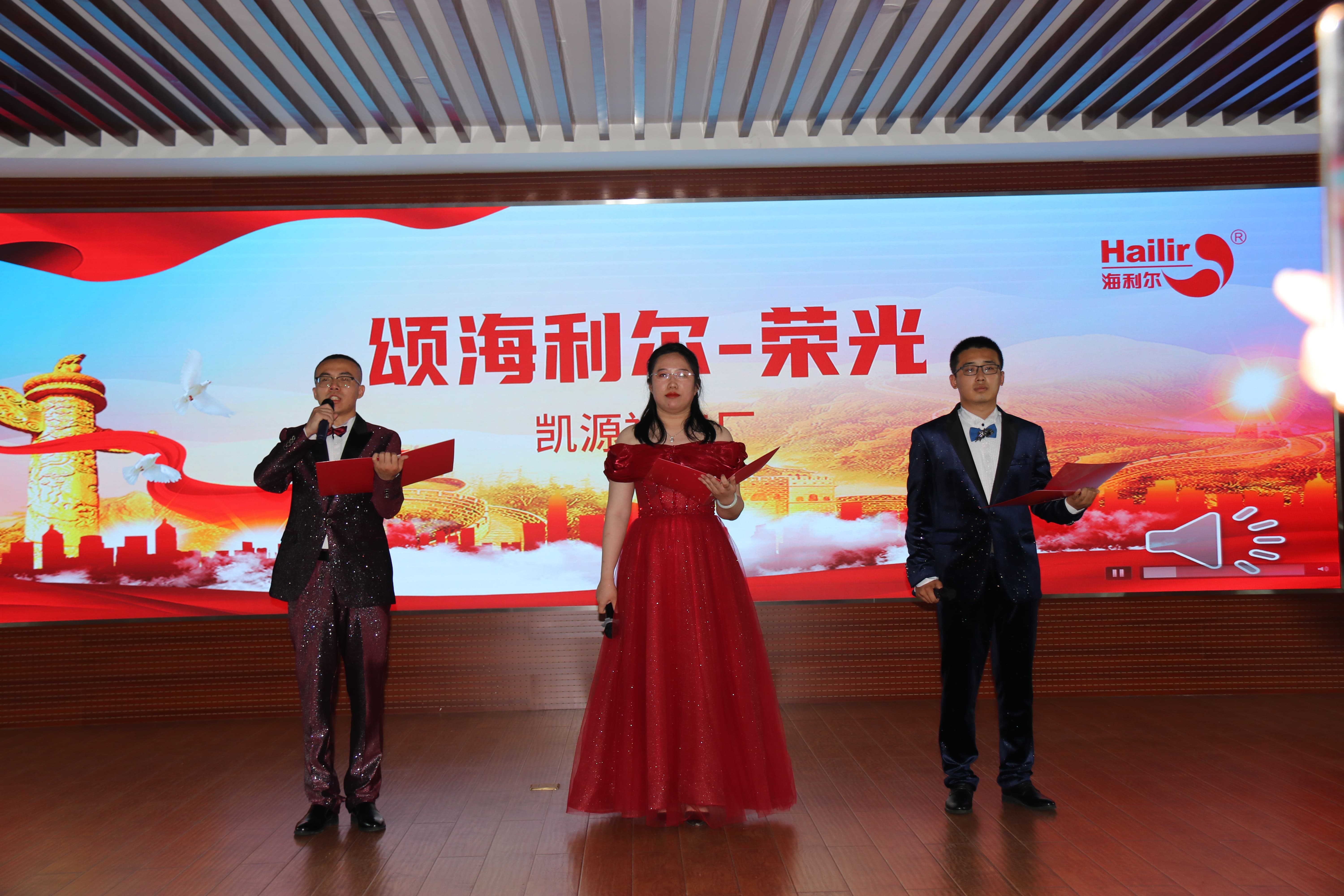 ? ? ? ?集團董事長葛堯倫、集團總裁葛家成、集團總工程師兼研發中心主任王良清、集團制劑生產總監楊勇、集團人力資源總監姜延紅、集團行政管理總監譚長雁等領導出席活動并擔任評委。8個參賽單位(按出場順序)——山東海利爾工廠、國際業務中心、奧迪斯工廠、恒寧生物、青島海利爾工廠、滕潤翔、凱源祥工廠、研發中心一一登場,貢獻了一場場別開生面的朗誦表演。臺上朗讀者聲情并茂,初心激蕩;臺下觀眾席掌聲陣陣,同心飛揚。一場充滿激情與創意、對黨、對祖國、對海利爾愛的表白深情演繹。
