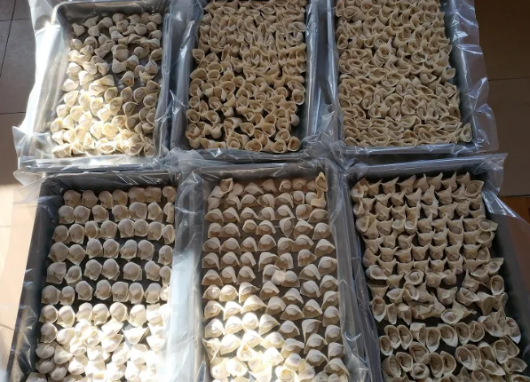 ? ? ? ?冬月初三當(dāng)天,幸福餛飩活動全面落地。參與包餛飩活動的女員工居多,從現(xiàn)場來看,女員工個個都是居家小能手,包餛飩又快又好,餡料足、個頭大,花樣百出。尤其是人力行政科的王翠姣,包的餛飩像一個個銀元寶,三車間的姜寧包出了玫瑰花餛飩,十分有食欲。經(jīng)過2個小時的準(zhǔn)備,一盤盤餡料在大家的巧手下變成了一個個餛飩,足足4000多個大餛飩整整齊齊的擺放在托盤里。