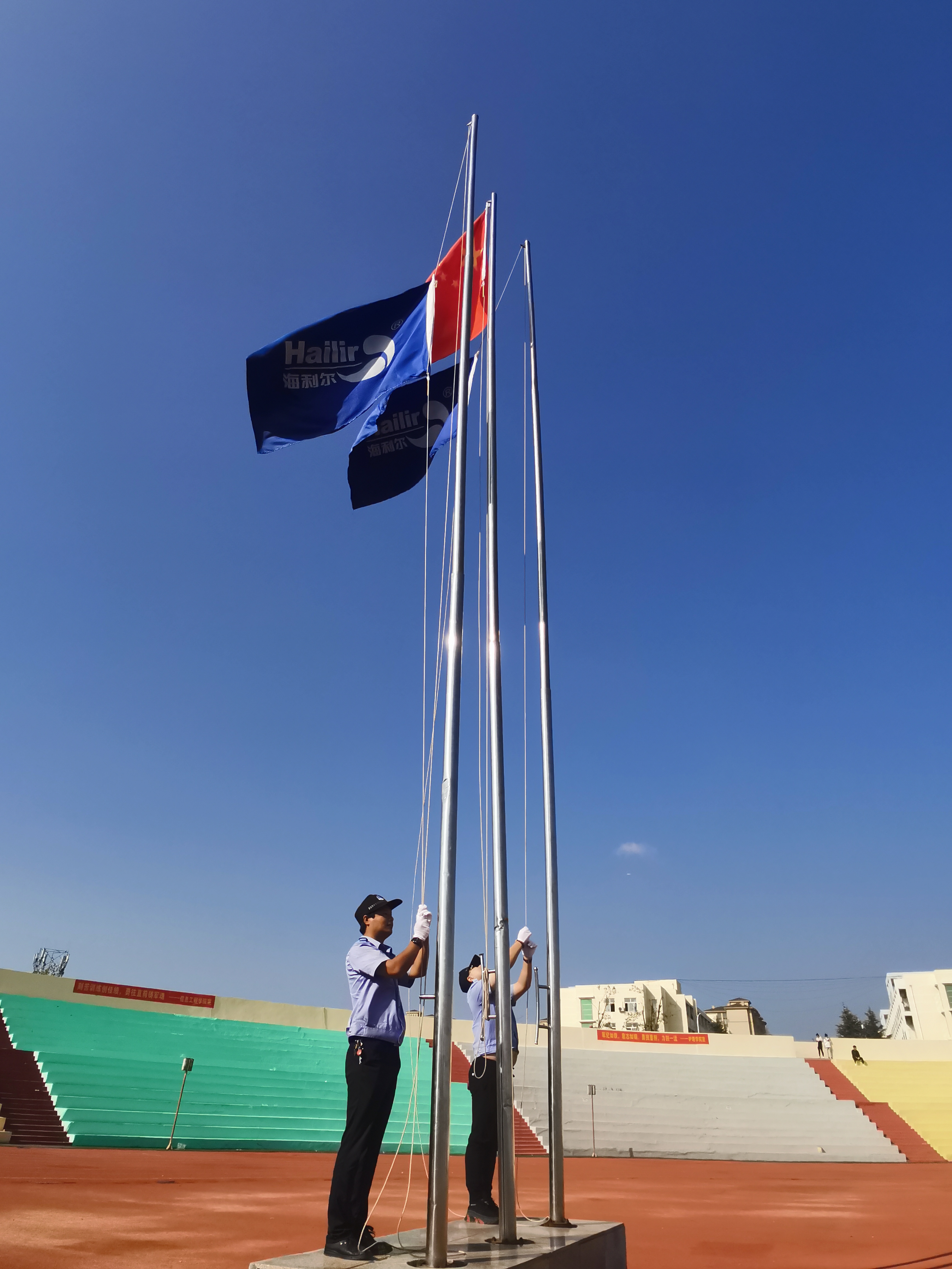 ? ? ? ?伴隨《運(yùn)動(dòng)員進(jìn)行曲》,在護(hù)旗方隊(duì)引領(lǐng)下,六大方隊(duì)身著統(tǒng)一的服裝,踏著整齊的步伐一一步入賽場(chǎng)。升國(guó)旗、奏國(guó)歌,海利爾人熾烈情懷早已從鄉(xiāng)土走向家國(guó);升海利爾旗幟、唱海利爾之歌,共同開啟海利爾事業(yè)守護(hù)者宣言、海利爾生存理念、海利爾不得觸犯的6個(gè)底線,海利爾人守平臺(tái)、創(chuàng)佳績(jī)的錚錚誓言響徹云霄。