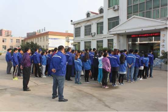? ? ? ? 孫廠長在講話中指出,工廠在接下來的生產中,要在保證產品質量、安全、環保的基礎上,全力降低成本,杜絕一切浪費。在生產工藝中要加強創新,改善工藝,提高生產效率,降低成本和消耗。就4月份的產品質量問題指出,誠信是我們的生存的根本,而產品質量就是誠信的最重要的體現,同時鼓勵大家將工廠的利益看做自己的利益。