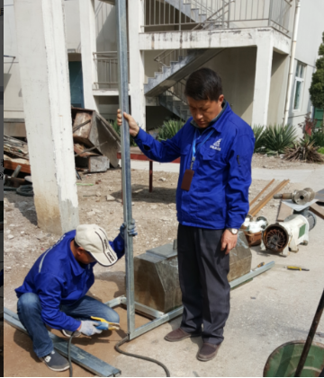 ? ? ??蘇廠長與設(shè)備科人員進行半自動灌裝機的焊接