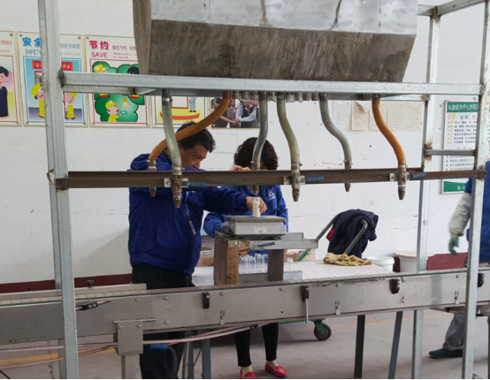 ?奧迪斯工廠顆粒劑生產(chǎn)任務(wù)重,重點產(chǎn)品、戰(zhàn)略產(chǎn)品瓶裝品規(guī)的顆粒劑全部都是傳統(tǒng)手工挖料,效率很低,而且需要多工序才能完成產(chǎn)品的生產(chǎn)(挖料、擰蓋、旋蓋、貼標、噴防偽)生產(chǎn)效率根本沒法達到市場銷售的需求,趙廠長與蘇廠長針對此項工作專門進行討論研究,如何進行效率提升?要用設(shè)備代替?zhèn)鹘y(tǒng)手工,經(jīng)研究確定制作半自動顆粒灌裝機,最終確定方案由蘇廠長親自現(xiàn)場跟進加工實施: