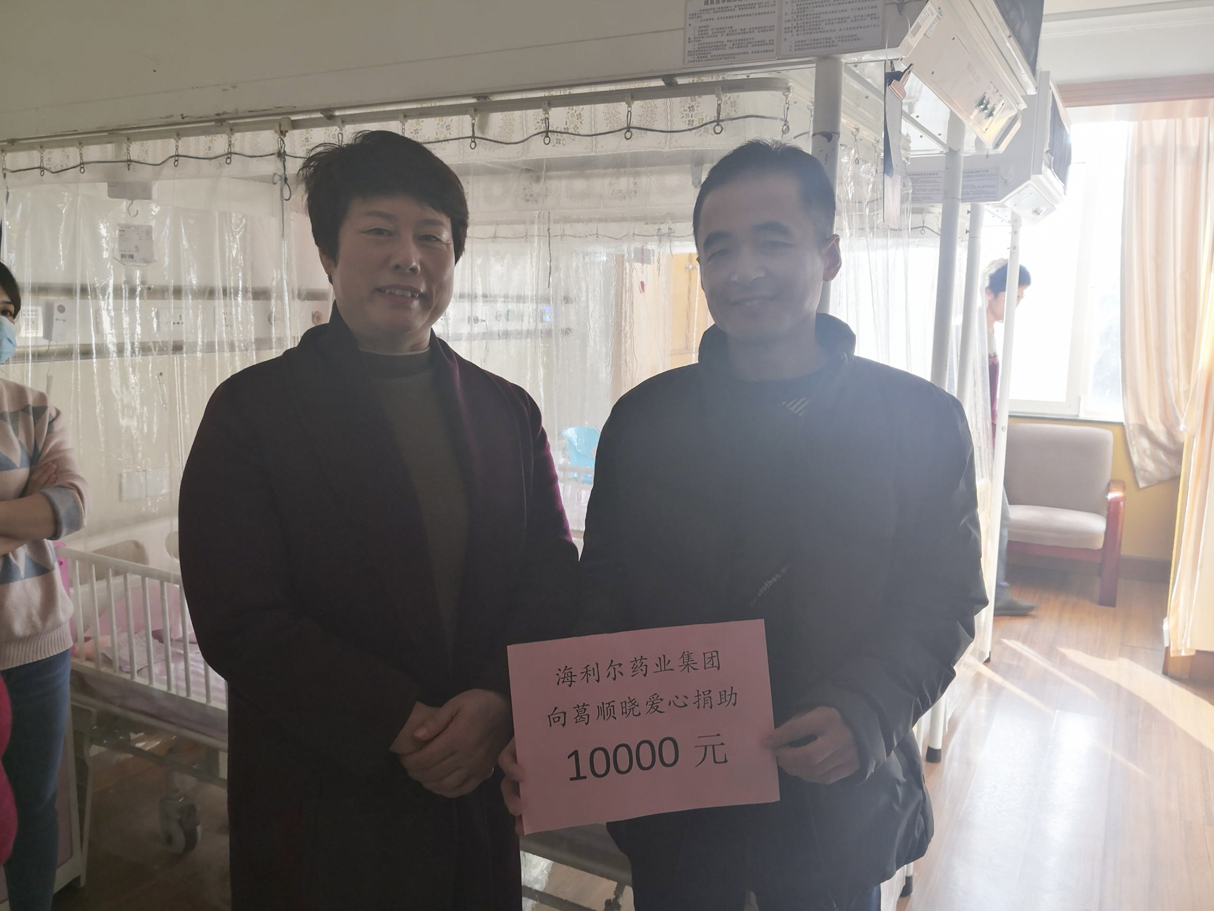 12月24日,集團董事張愛英女士帶領(lǐng)公司工作人員赴青醫(yī)附院(市南區(qū))看望公司職工葛順濤的侄女(公司前職工葛順曉之女,患有重大疾病,導(dǎo)致家庭困難),張總在病房細致了解病情,親切慰問葛順曉及其家人,并代表公司向其捐助1萬元,張總還帶去了水果、點心等多種禮品,祝愿小寶貝早日康復(fù)。